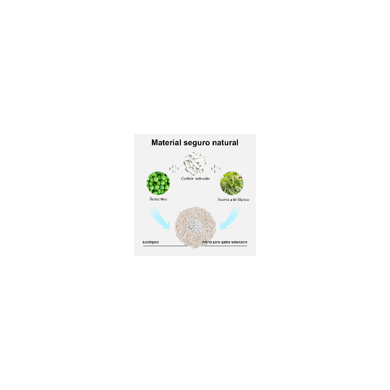 * El material polimérico superabsorbente contiene carbón activado y polvo de bambú, que desodorizan de forma mucho más eficiente. La arena de tofu, además, tiene aroma a té blanco y desprende una fragancia fresca y elegante al estar en contacto con el agua.