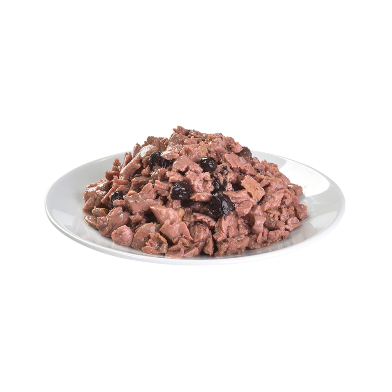 70% pato y pollo, paté puro de carne con trozos enteros de menudencia y carne