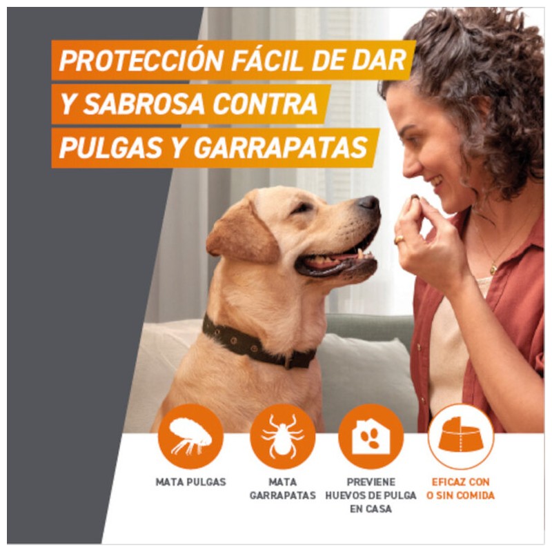 Pastillas antiparasitarias externas para perros de todas las razas, son fáciles de administrar, eliminan los parásitos externos como pulgas y garrapatas, de efecto rápido y eficaz.